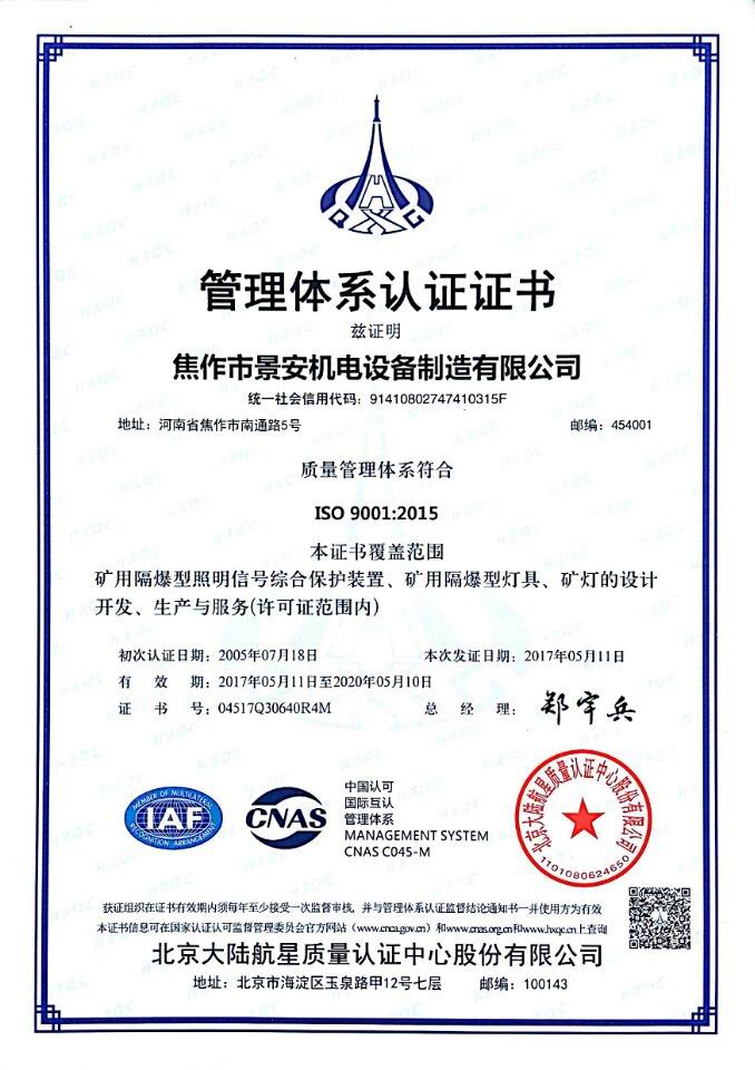 焦作景安公司始終堅持“以科技為先導,以市場為導向”的發(fā)展戰(zhàn)略,不斷進行新產(chǎn)品的研制和開發(fā),在國家“六五”到“九五”期間,承擔和參與了國家多項科技攻關項目。并被中國電器工業(yè)協(xié)會評定為“質(zhì)量可信產(chǎn)品”。特別是在礦用防爆燈領域,礦用隔爆型半導體(LED)照明燈具,2008年列入國家火炬計劃,獲2009年河南省工業(yè)和信息化廳的科技成果二等獎,并擁有多項國家專利。 |